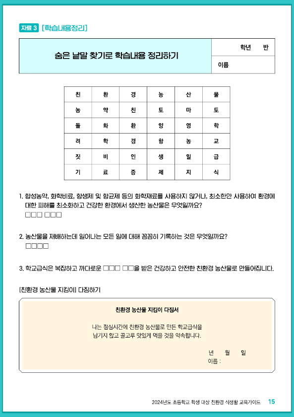 1~3학년(학습지 2종, 숨은 낱말 찾기로 학습내용 정리하기)
