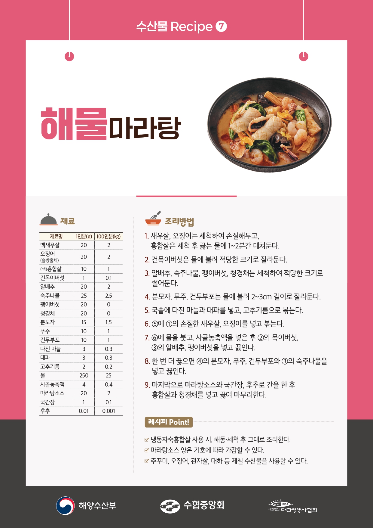 2021년 수산물 요리 레시피 공모전 수상작 카드뉴스