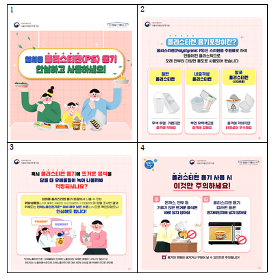 식품의약품안전처에서는 일회용 폴리스티렌(PS) 용기의 안전성과 주의사항에 대한 카드뉴스를 제작 및 배포하였습니다. 업무 시 참고바랍니다.