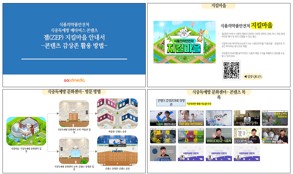 식품의약품안전처의 "지킬마을"은 동영상, 매뉴얼 등 식중독 예방 관련 다양한 콘텐츠를 한자리에서 확인할 수 있고,