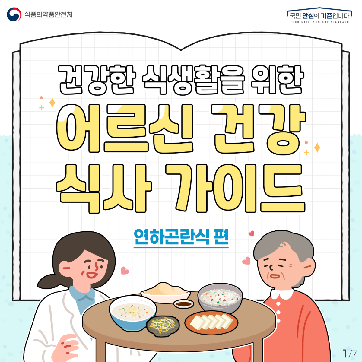 식품의약품안전처와 사회복지급식관리지원센터는 연하곤란(삼킴장애) 어르신들을 위한 권장식품과 주의식품 내용을 담은 카드뉴스를 제작 및 배포하였습니다.
