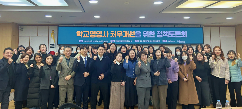 (사)대한영양사협회(회장 송진선, 이하 ‘영양사협회’)와 (사)대한영양사협회 전국학교영양사회(회장 전현옥, 이하 ‘전국학교영양사회’)는 12월 24일(수) 더불어민주당 백승아 국회의원이 주최한 「학교영양사 식생활지도수당 지급 이행 촉구 결의대회」와 「학교영양사 처우개선을 위한 정책토론회」를 주관하였다고 밝혔다.