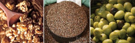 예로부터 중국 미인들 사이에 미용식으로 통했던 호두. 필수지방산이 풍부해 피부에 윤기와 활력을 준다. 리놀산과 비타민E가 다량 함유된 들깨는 햇빛에 오래 노출되어 거칠어진 피부에 특히 좋다. 들깨 달인 물에 꿀을 넣어 하루 한 잔씩 마실 것. 보습 효과가 뛰어난 올리브 오일은 빵에 찍어 먹거나 요리할 때 식용유 대신 사용하자.