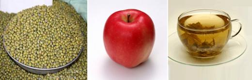 녹두는 특유의 찬 성질 때문에 피부의 열을 내리고 피지 분비를 조절해준다. 녹두전이나 녹두죽으로 만들어 먹을 것. 비타민 B2가 풍부한 포도, 복숭아, 딸기 등의 과일도 번들거림을 예방하는 데 효과가 있다. 우롱차를 물 대신 자주 마셔도 도움이 된다. 모공이 크다면 사과를 많이 먹을 것. 펙틴 성분이 모공의 기능을 강화시켜준다.